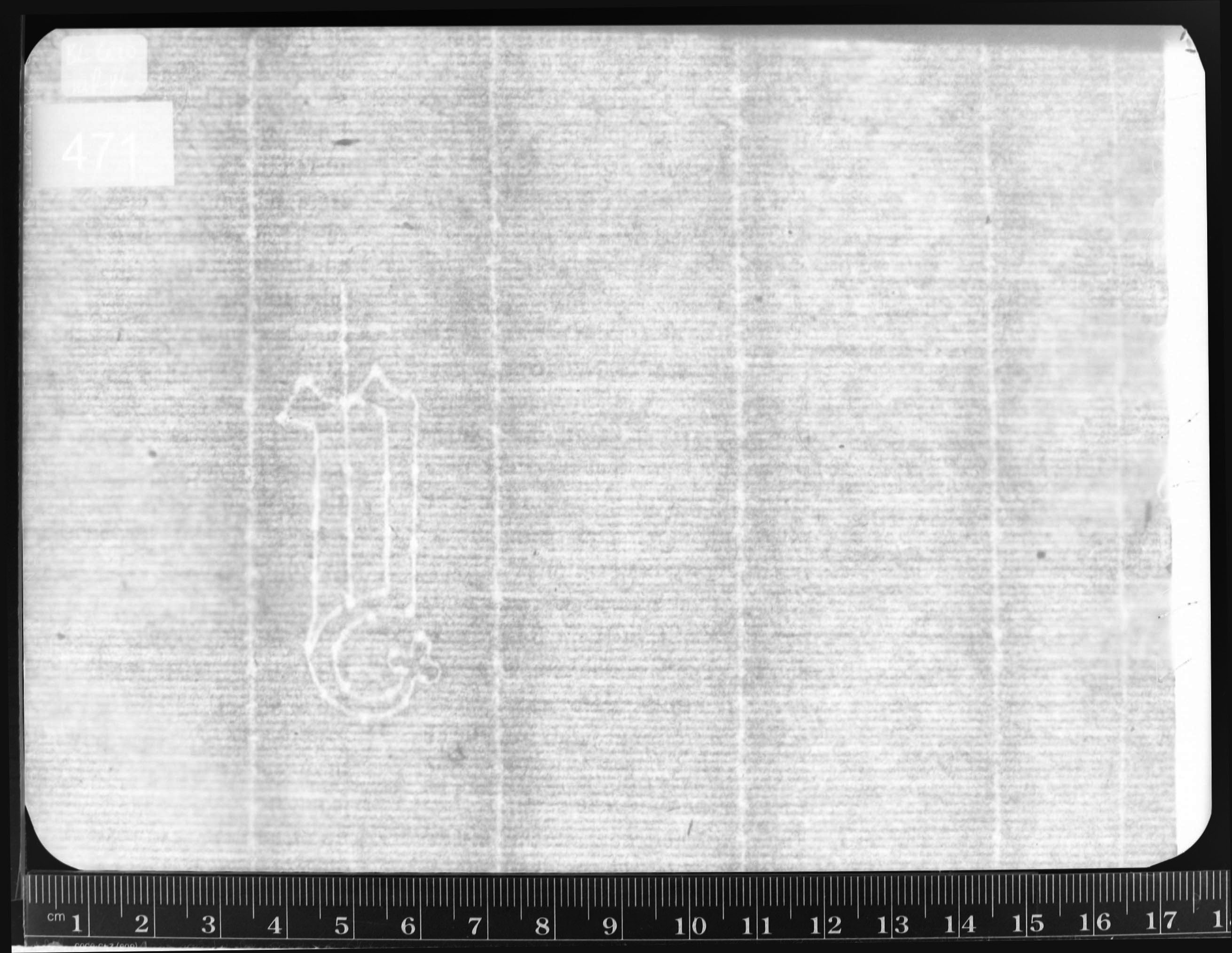 | Reference number: 471 Watermark description: letter y, latin cross, tail right Bernstein description: letters/digits - one letter - letter y - latin cross - tail right Mainclass IPH: W Maingroup description: letter y Position: right Identical watermarks: BMC XI 426: Rood 6, 7, 8, 9, 11, 12, 13, 14, 15, 16, 17, 18, 19, 20, 21, 22, 23, 24, 25 Reproduction: beta-radiograph Depository: British Library, London, Great Britain | ![]() ![]() |